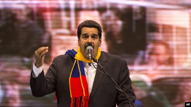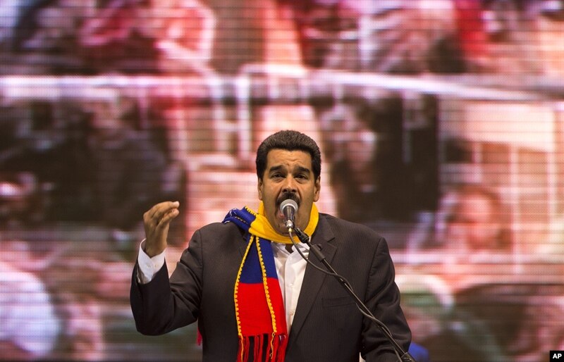 | El presidente Nicolás Maduro durante un mitin en Buenos Aires, antes de su visita a Brasilia. |