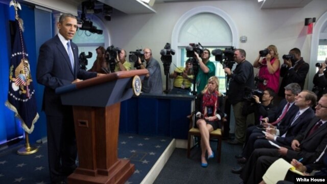 | Horas antes de entrar en vigor el cierre el pasado martes, Obama hizo declaraciones a la prensa en la Casa Blanca. |