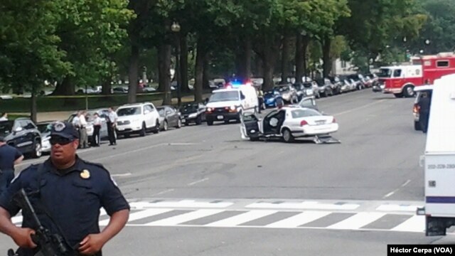Un testigo, empleado de una empresa de comunicación del área de Washington, quien paseaba en su bicleta en los alrededores aseguró a la Voz de América que vio un "vehículo oscuro, compacto acercarse hasta donde se encuentran las barricadas" que detienen el tráfico frente al Capitolio y que luego se escucharon una serie de disparos.