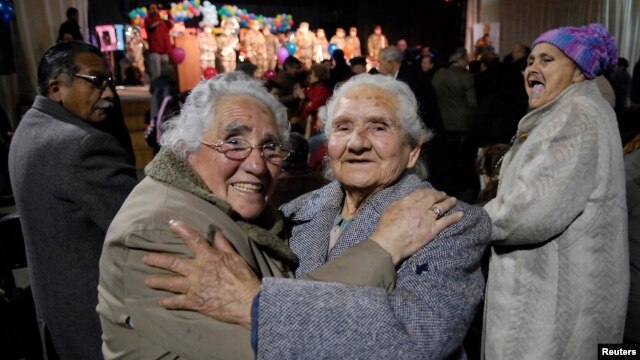 | Dos ancianas chilenas se abrazan durante una celebración para adultos mayores. Chile es el país latinoamericano mejor preparado para atender a sus adultos mayores. |